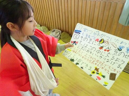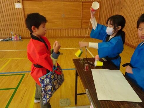 12月5日(金),2年生が生活科「なかよしまつり」を開催しました。前半は,1年生や先生方をお招きし,後半は,自分たちで楽しみました。(1年生は今回の体験を2年生になった際の自分たちの開催につなげます。)お祭り本番に至るまでには,何の遊びをする「おみせ」にするか,どのような物を準備するか,景品は何にするかなど考えながら作業を進め,事前に練習を積みました。その際,他のグループの「おみせ」のよさや改善点について,アドバイスなどの気付きを伝え合う作業をしています。そして,アドバイスを基に遊びや遊ぶ物の手直し,必要な物の追加などを行ってきました。お客さんには,遊び方の説明,高得点を取るためのコツの説明などをします。自分たちで試しの遊びを繰り返しているので,説明の言葉が非常に洗練されていました。さて,2年生になると,活動しながら刻々と変わる状況に柔軟に対応できるようになります。さて,子供たちは,生活科の活動はもとより,学校での様々な経験を自分のものにして,そして活かしていることが伝わりました。大人が意識すべきは,指導・支援の絶妙のタイミングだと感じました。啐啄同時……