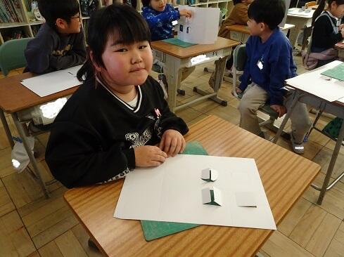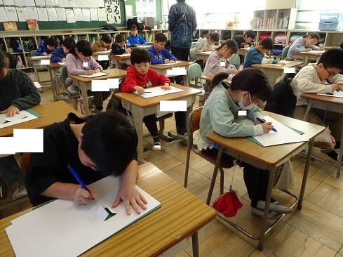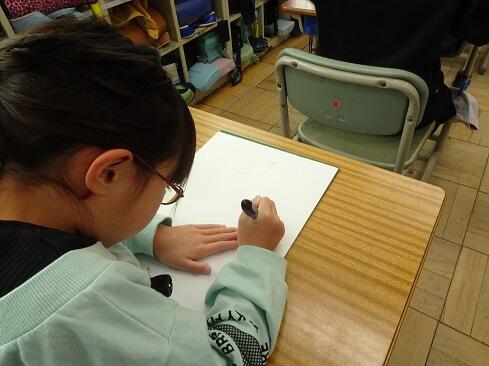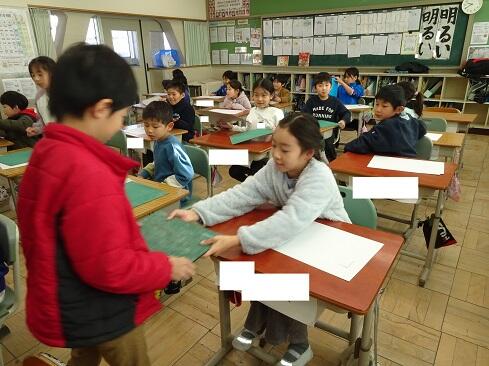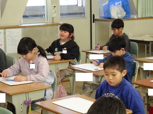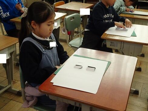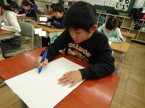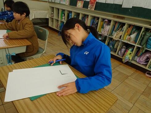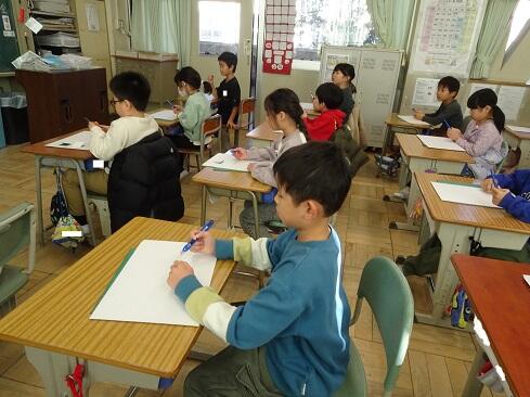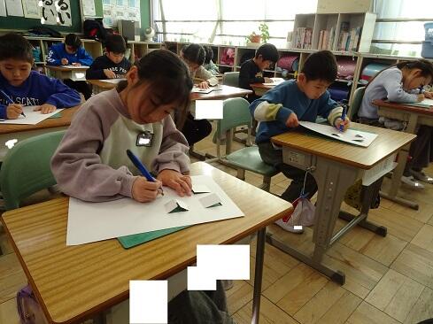 1月9日(金),2年生は図画工作の学習で初めてカッターを使います。今回は1時間目ということで,カッターの使い方を学習しました。カッターを活用すると,くり抜いたり窓を作ったりすることができ,ハサミとは違ったよさに気付いていきます。さて,まずは持ち方のレクチャーです。そして,スライダーを動かすと刃が出たり戻ったりすること。刃は出し過ぎないこと。切るときは,鉛筆のように立てずに,少し寝かせて,ひじを引きながら切ること。紙を押さえている手は,カッターの進行先に置かないこと。切っている途中でカッターを置くときは,必ず刃をスライダーでしまうこと。曲線は,切る紙を少しずつずらしながら切ること。作業中は,後ろの席を向かないこと。安全に使いこなすためには,気を付けることはたくさんあります。子供たちは,1つ1つ先生の話に頷きながら,真剣に聴きます。そして,いよいよカッターとカッター版,そして練習シートが配られ,カッターデビューです。子供たちの感想で多かったのは「疲れました……」です。緊張するし,力もいるし,よく頑張りました。それでは皆さん,カッターの使い方,分かったー?