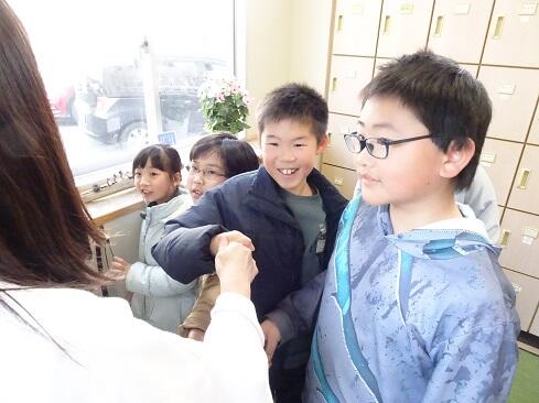 3月17日(火),いきいき・相談学級に支援員として,9月からお力添えくださいました,日比野先生が,最後の勤務日を迎えました。卒業式より一足早く先生とのお別れです。子供たちはそれぞれ「さようならに」握手を添えたり,悲しいですとか行かないでと言葉を添えたりしながら大切な人との別れをしました。日比野先生,ありがとうございました。子供たちから愛されることは教職員として最高の宝です。先生,さようなら。