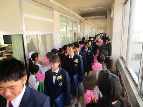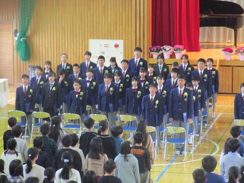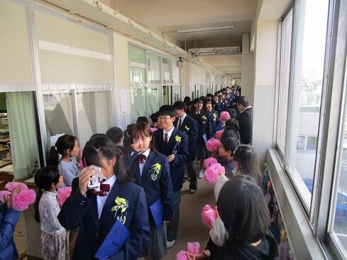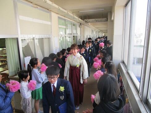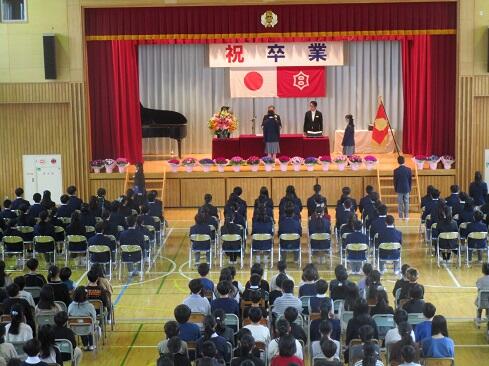 3月19日(木),第116回卒業式を挙行し,90名の児童を送り出しました。これまでお世話になりました,関係の皆様には式を滞りなくすませることができましたことを御報告いたします。今年度も全校生参加の学校行事として計画し,4年生と5年生は会場にて列席し,1年生から3年生は屋内運動場の広さの関係で,各教室からライブ配信を見ながらの列席としました。各教室から歌声も聞こえました。担任の先生方の計らいに感謝です。式終了後は,6年生を廊下で歓送しました。下級生は,言葉をかけたり握手をしたりして,別れを惜しみました。本校で培った「教養」が,混迷を極めつつあるこの世界に,やがて,新しい叡智の光をもたらしますように……。卒業,おめでとう。