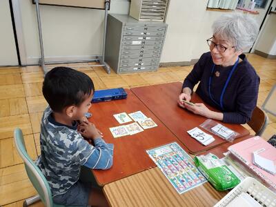 1年生も早速,母語指導の先生や日本語ボランティアの先生からの指導を受けています。指導者は,母語指導4名,日本語ボランティア5名,簗瀬小教員1名の計10名です。現在,23名の児童が日本語指導教室を利用しています。日本語の学習はもとより,教科書の勉強や学校生活,日本の文化なども学んでいます。先生方にはたくさん助けていただき,感謝いたします。