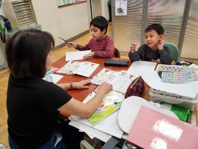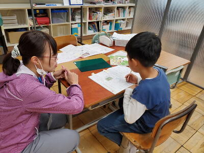 母語指導の先生が,日本語の作文指導をしてくださっています。