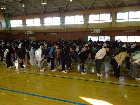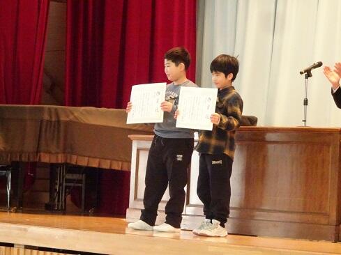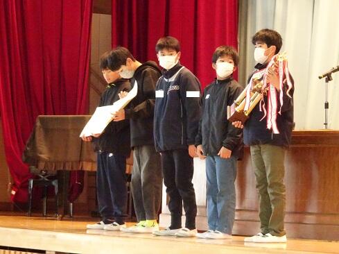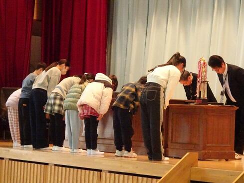12月25日(木),令和7年の最終登校日です。業間の時間を活用して,表彰伝達と冬休みの過ごし方についてお伝えする集会を実施しました。年明けの登校初日も表彰伝達の集会を実施する予定です。「歳寒松柏」「既往不咎」