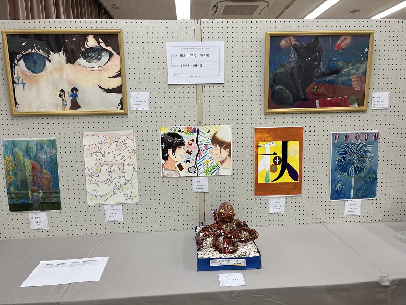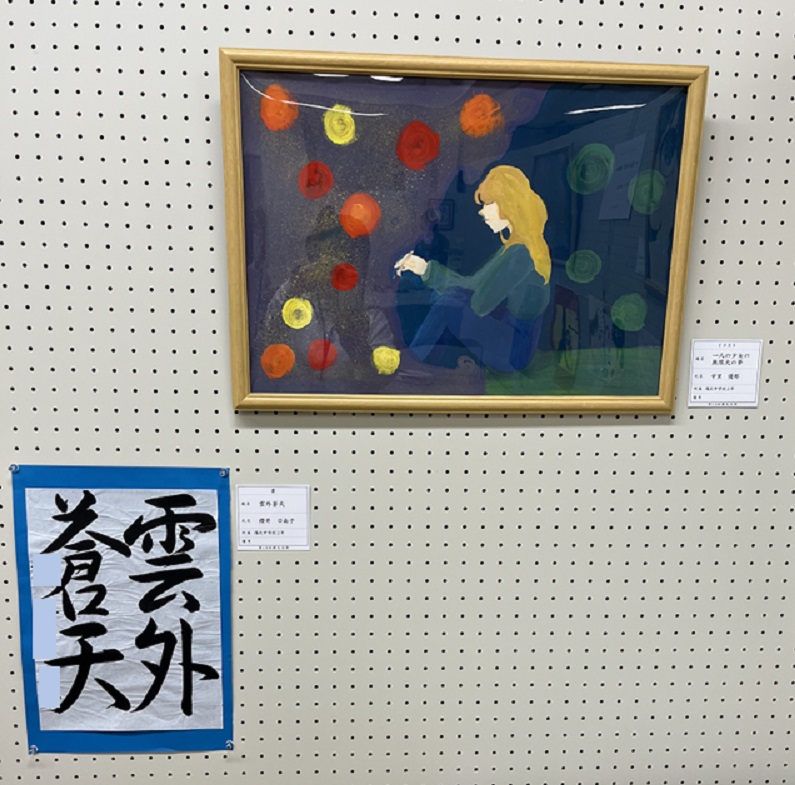 本校美術部の有志による作品展示に加え、希望する生徒による書道作品の展示もあります。