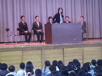 着任式では新任の先生を迎え,代表の児童が堂々とお迎えの言葉を言うことができました。