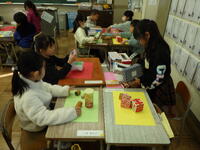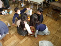 グループごとに箱を高く積んだり,組み合わせて形を作ったりしました。