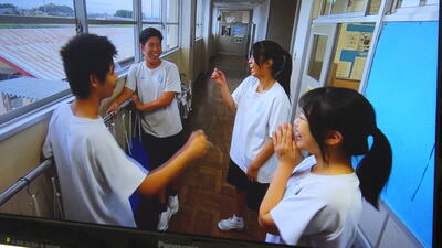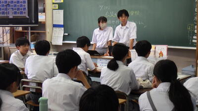 〈動画のワンシーン〉 〈クラスでの話し合い活動〉
