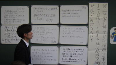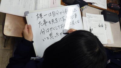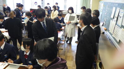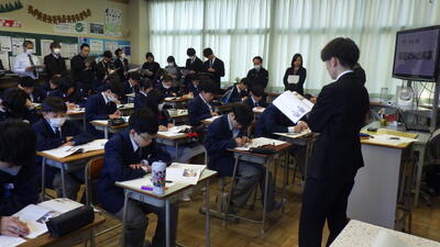 11日(木)5校時、1年2組で道徳の研究授業を実施しました。教材の主人公の葛藤について考え、自らの自由な意思や判断に基づいて政治に行動し、結果に責任をもとうとする判断力について考えを深めました。生徒たちは、質問に対する反応が良く、活発に意見を交わしていました。