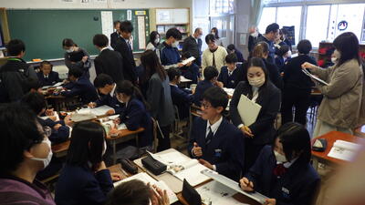 授業終了後、外部から指導員を招き、研究協議を行いました。