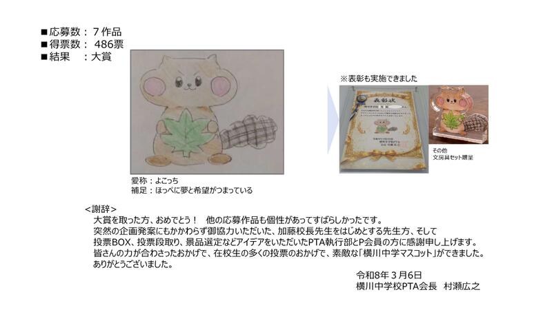 『横川中学校マスコット』選定について
