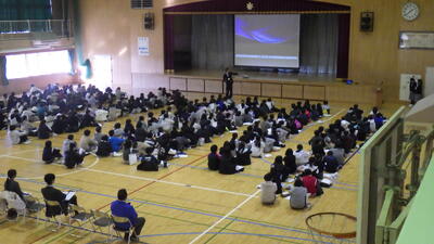25日(木)、体育館で表彰・冬休み前全校集会を行いました。明日から、13日間の冬休みです。新年を迎えるにあたり、生徒たちは新たな目標・決意をもつことでしょう。