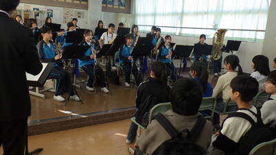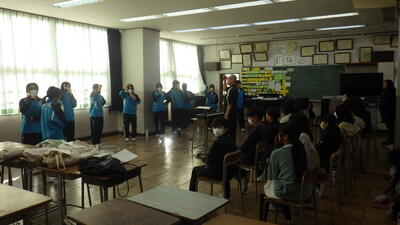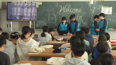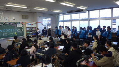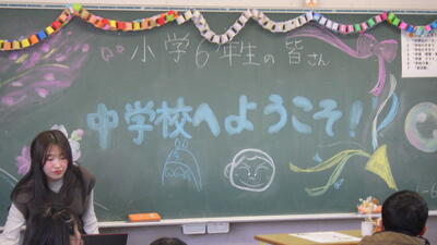 1月16日(金)午後、小学6年生が横川中学校を訪問しました。体育館で開会式を行ったあと、6会場に分かれて交流会を行いました。中学1年生が「中学校の生活、きまり、学習、部活動、横川中の特徴」等を説明しました。6年生児童たちは中学生の話に、真剣になったり笑顔になったりして耳を傾けていました。最後に、中学生から6年生一人一人にお手紙を渡しました。