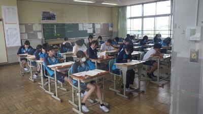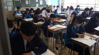 4月13日(月)は、2,3年生は実力テストを実施しました。進級した今の学力を知るためのテストになります。思い通りの結果になった人はこれまでの努力の過程に自信をもってがんばりましょう。思った通りの結果にならなかった人は、これまでの努力の過程を見直し、自分に合った学習方法を身に付けられるようにがんばりましょう。わからないことは、どんどん先生方に質問してください!