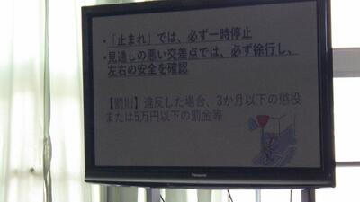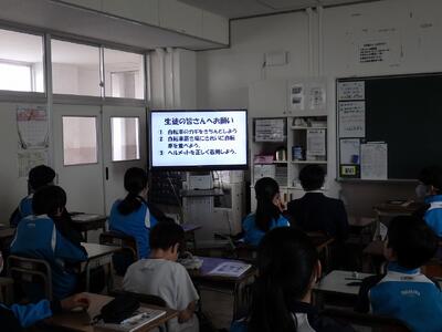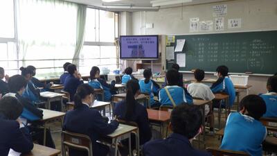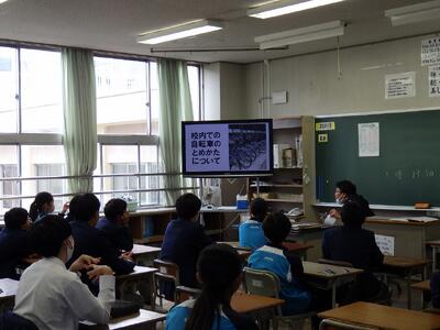 4月13日(月)6時間目に交通安全教室を実施しました。今回は、放送室から、交通安全担当の先生によるプレゼンテーション資料を用いた講話形式で行われました。本校では多くの生徒が自転車通学をしているので、道路交通法の改訂に関することや、通学する際に気を付けることなどについて確認しました。