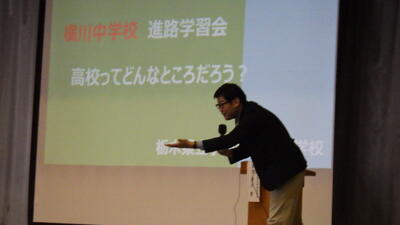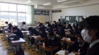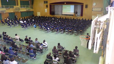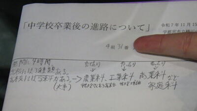 2,3時間目、1年生と2年生は進路学習を実施しました。県立宇都宮東高等学校主幹教諭 鈴木啓介様をお招きし、中学卒業後の進路についてお話していただきました。3年生は、宇都宮学の発表を行いました。