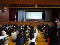 6年生の子供たちは他校の児童と一緒に、生徒会の先輩方から中学校生活に係る説明を聞いたり、校舎内を回って1年生の授業の様子を見学したりしました。