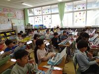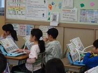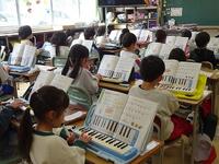 1年生の教室に行ってみると、音楽の授業で鍵盤ハーモニカを演奏していました。