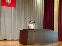 2学期の抱負を3年生の代表児童が堂々と発表しました。クラスの中でさえ発表することが苦手だったけれど、勇気を振り絞って、クラスの友達にパワーをもらって、代表児童を引き受けたそうです。