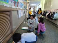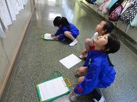昨日、1年生の廊下を通ると、壁面に掲示された図工の作品を1年生が熱心に鑑賞している最中でした。