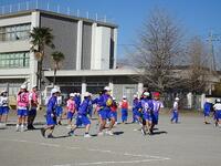 強風の中ではありましたが、天気にも恵まれ、縦割り班ごとに、大縄跳びやだるまさんがころんだ、中線ふみなどをして楽しく遊びました。