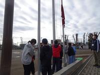 毎日、校庭にある掲揚塔に、国旗・市旗・校旗を掲げていますが、その当番は6年生が担っています。