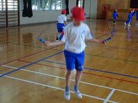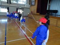 冬の体育と言えば縄跳びですが、1年生は前とびや後ろとびなどをリズムよくとぼうと一生懸命練習していました。