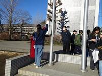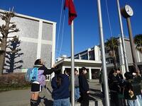 先月末、6年生から5年生へ旗揚げのやり方が伝授され、今月になっていよいよ5年生による旗揚げ当番がスタートしました。