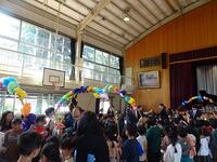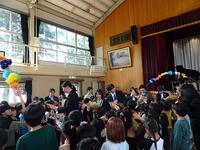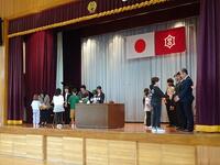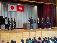 昨日の5校時、昨年度までお世話になり、定期異動で別の学校等に転出した9名の先生方を招いて離任式を行いました。