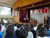 昨日の2校時に、春らしい陽気の中、1年生との対面式を行いました。