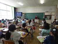 先週の入学式には6年生だけが在校生代表として出席したため、1年生を2~5年生に紹介しました。