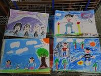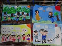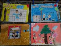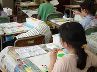 2年生の子どもたちは先生の説明をしっかりと聞き、クレヨンで描いた絵にぴったりの絵の具の色を選んで塗ることができました。