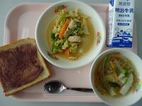 主食として愛知県の「小倉トースト」、主菜として岐阜県の「鶏ちゃん焼き」、汁物として京都府の「かぶ入り野菜スープ」が出されました。