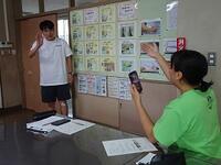 先日撮影した水泳の松下選手のインタビュー動画を編集するにあたり、五代小学校の林田校長先生にアドバイスを求めたところ、ミニ校内研修でやろうということになり実現したものです。