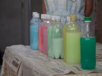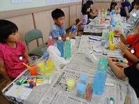 それぞれ思い思いの色水をつくり、ペットボトルに入れて見比べていました。