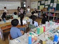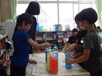 2年生の教室に行ってみると、図工の学習で色水あそびをしていました。