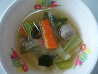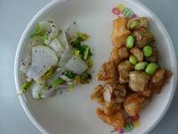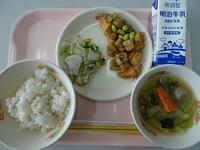 主菜の「チキンチキンごぼう」は、今から30年ほど前、ある家庭料理を参考に山口県の学校給食で取り入れられたことが始まりだそうです。副菜の「ゆかりあえ」は広島県の食品会社が作っているゆかりで白菜や大根をあえてあり、さっぱりした味がおいしかったです。栄養たっぷりの汁物の「いわしのつみれ汁」は、高知県では県内全域で親しまれているそうです。