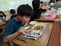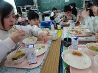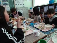 1年生の教室に行ってみると、先生の説明を聞きながら、みんなで美味しそうに食べていました。