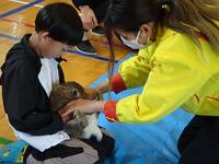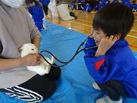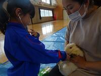 子供たちは、ウサギを抱っこして、ウサギの体温のぬくもりを感じていました。また聴診器を当てて拍動を聴くことを通して、ウサギが確かに生きていることを実感することができました。