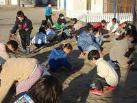 現在、校庭の落ち葉清掃を学年ごとに交代して行っているところですが、イチョウなどもすっかり落葉してしまったため、昨日の朝の活動時に3年生は砂場の石拾いをしてくれました。