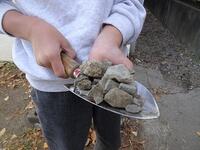 砂場を掘れば掘るだけ石が出てくることもあり、3年生のやる気も相まって、たくさんの石を集めることができました。