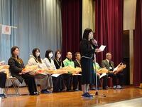 日頃から、交通指導や防犯パトロール、農業体験指導、読書ボランティア、ミシンボランティア、学習支援等でお世話になっている地域の方々をお招きし、感謝の気持ちをお伝えするのがねらいです。