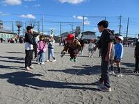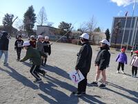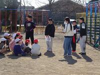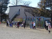 強風の中ではありましたが、天気にも恵まれ、縦割り班ごとに、大縄跳びやだるまさんがころんだ、中線ふみなどをして楽しく遊びました。
