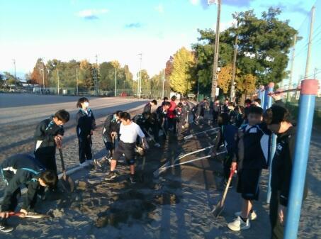 体育委員では、グランドの砂を均したり、剣道の防具を片付けたり、椅子やスコップの移動をしたりしました。また、休み時間にボールを蹴ってはいけない場所の呼びかけや、全校集会の準備などを主に活動を行いました。