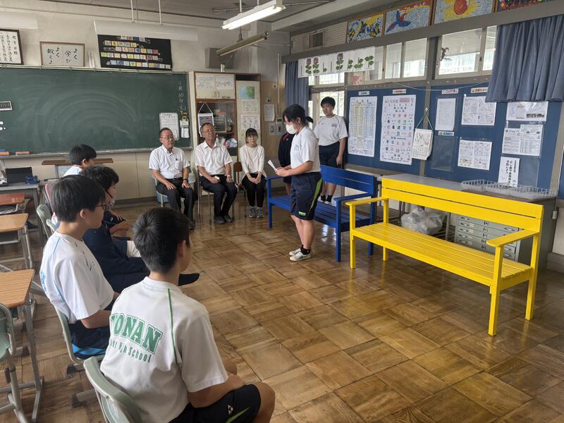 ベンチは今後、校内に設置します。陽南中のみんなが喜んでくれることを願っています。