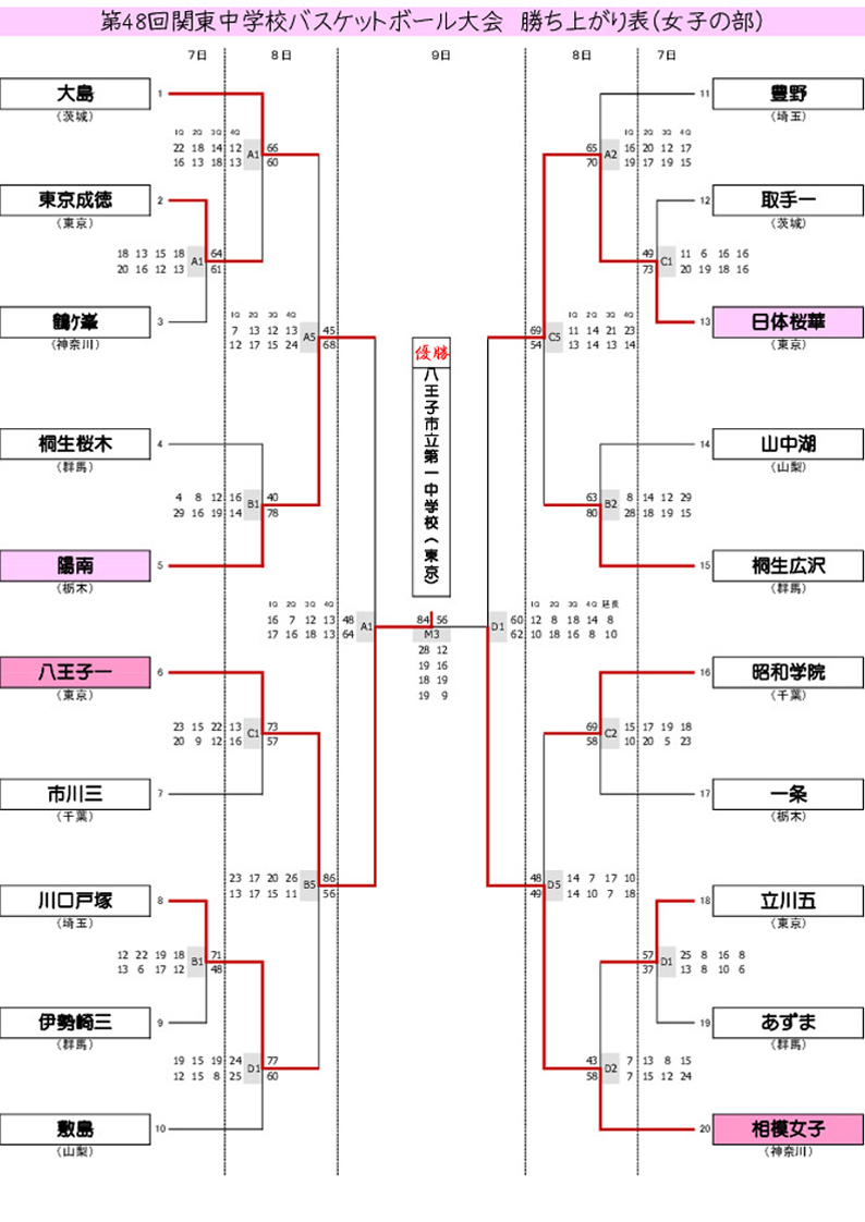 8月7日(火)から8月9日(木)の3日間,群馬県前橋市のALSOKぐんま総合スポーツセンターを会場に第48回関東中学校バスケットボール大会が開催されました。本校からは,女子バスケットボール部が出場しました。7日(火)には,開会式並びに1回戦男女各4試合が行われました。