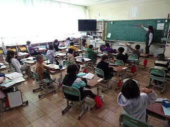 3年1組は算数で,整数や小数,分数で表す問題,数直線の問題,計算問題など,いろいろな復習問題に取り組んでいました。