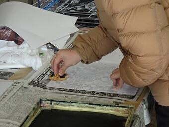 5年3組は図工で,版画の作業を進めていました。彫り終わると実際に紙に刷ってみて,修正の作業をしていました。