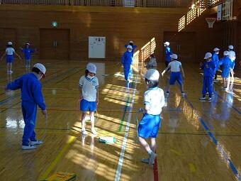 2年1・2組が体育をしていました。皆で元気よく走っていました。