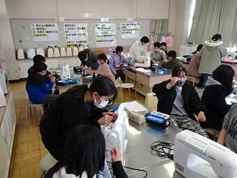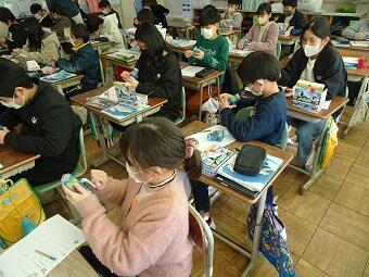 6年2組は家庭科で,裁縫をしていました。黙々と作業に取り組んでいました。