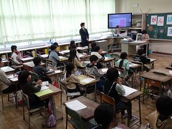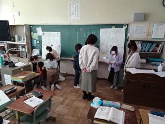 1年2組は,グループになっていろいろな発表の練習をしていました。